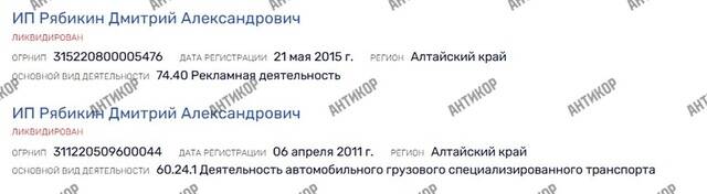 Как тебе такое, Илон Маск, а? Правда, ЧП Рябикин Дмитрий Александрович (ИНН 220505395310) свою деятельность ликвидировал в 2015 году. А занимался он, судя по Руспрофайлу, рекламой и грузоперевозками. А потом вдруг сменил фамилию и переквалифицировался в айтишники.