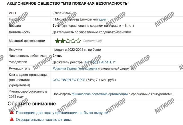 Итак, на запрос о Fortes выдается как минимум два результата. Согласно первому, под этой вывеской работает ООО «Фортес про» с регистрацией в Москве и учредителями Калашникова Екатерина Сергеевна (26%) и АО «МТВ ПБ» (74%). Об этом сообщает Редакция