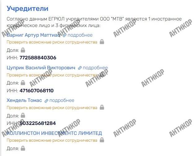 Почему? Все просто – за АО «МТВ ПБ» стоит ООО «МТВ» (ИНН 7704440000), связанное с Кремлем и попавшее под санкции. Потому ООО «МТВ» пришлось срочно выводить из структуры владельцев ООО «Фортес про», которое изначально создавалось для «распила» бюджетных денег по созданию «программ противопожарной безопасности». Случилось это аккурат после пожара в «Зимней вишне», и изначально ООО «Фортес про» заявляло своим основным видом деятельности именно разработку «противопожарных систем». Учредители ООО «МТВ», как уже упоминалось, тесно связаны с Кремлем. Артур Варниг – друг Владимира Путина из «Штази» (спецслужба ГДР, аналог советского КГБ); Василий Цуприк – выходец из «Роснефти», там же работал в свое время Томас Хендель.