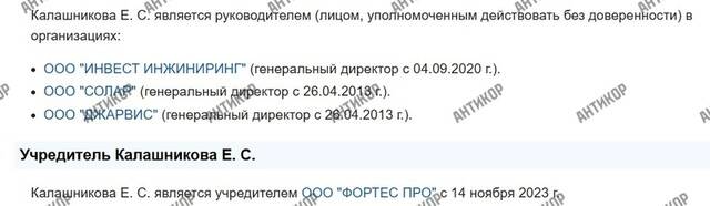 Кто стоит за офшором «Коллинстон Инвестментс Лимитед» - по понятным причинам установить не удалось, однако еще одна соучредительница ООО «Фортес про» - Екатерина Сергеевна Калашникова – является руководителем нескольких организаций, связанных с офшорами.