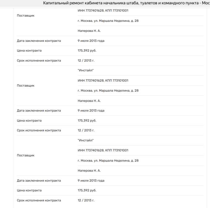 Было среди заказчиков и Федеральное казенное учреждение «Центральная войсковая комендатура по материально-техническому обеспечению Главного командования внутренних войск МВД России». А как мы помним, Денисов-старший - это выходец из структур МВД как раз.