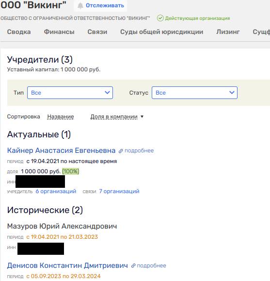 Но в активах Денисова-младшего нас интересует не только компания «ЦВМП», но и ООО «Викинг» (розничная торговля продуктами, прописано в Королёве), владельцем которого он перестал быть всего-то в конце марта 2024 года.