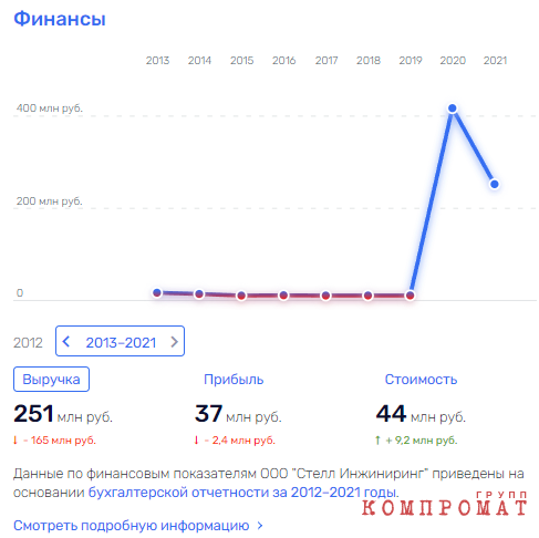 Не имея никакой выручки на протяжении почти шести лет, по итогам 2021 года она показала прибыль в 20 млн рублей. Стоимость активов превышает 22 млн рублей. При уставном капитале в 10 тыс. рублей в структуре трудится всего один сотрудник.