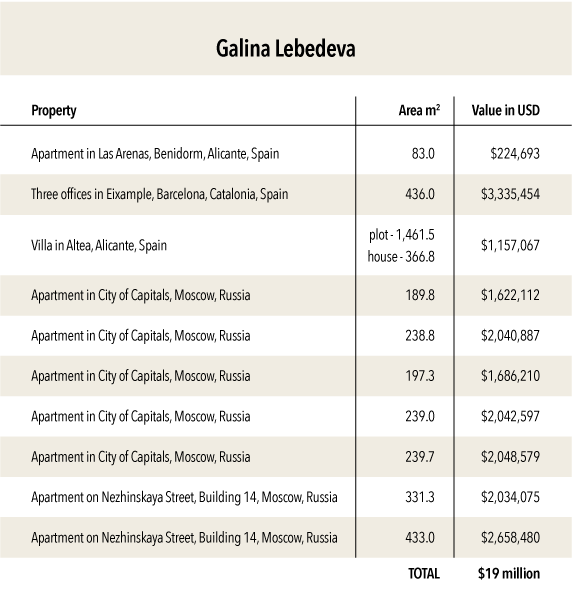 It is alleged that Zhirinovsky’s relatives and associates possess numerous properties around the world. This includes 19 apartments and commercial spaces in Moscow owned by Telmi, Galina Lebedeva’s company and former spouse of Vladimir Zhirinovsky.