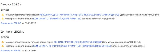 Компания принадлежит международной компании МКАО "Хайлэнд Голд". Ее учредитель скрыт, но очевидно, что за ней должен стоять Владислав Свиблов. Он же выступает ее генеральным директором. Структура зарегистрирована в мае 2023 года. А в июне - вошла в капитал "Тасеевского", причем, с кучей долгов.