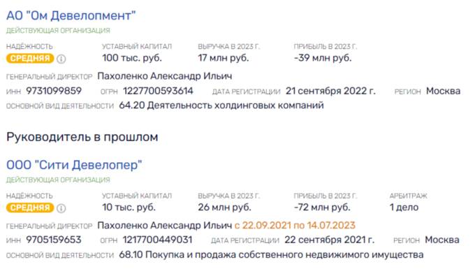 Однако интересней фигура экс-менеджера «Инграда» Александра Пахоленко. До 2023 года он выступал гендиректором ООО «Сити Девелопер», занимавшегося продажей недвижимого имущества. «Напродавал» так, что сейчас активы структуры составляют минус 160 млн рублей, чистый убыток - 72 млн рублей. Может быть, деньги «Роснефти» стоит поискать и здесь?
