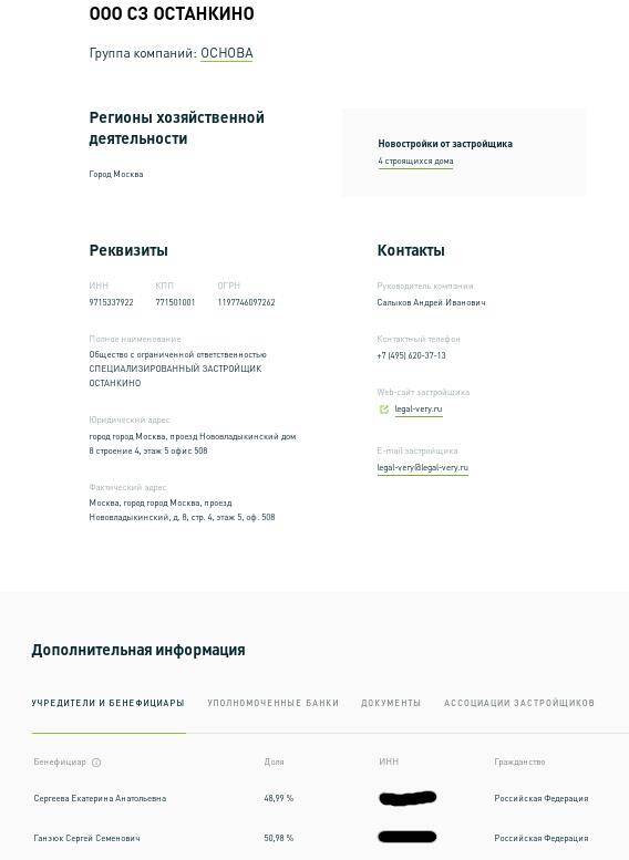 Этот СЗ входит в строительный дивизион «Основы» Ручьева. Сейчас структура возводит четыре крупных жилых объекта на ул. Ботаническая, возле Ботанического сада в Москве. При этом на сайте «Дом.РФ» господин Ганзюк указан бенефициаром СЗ.