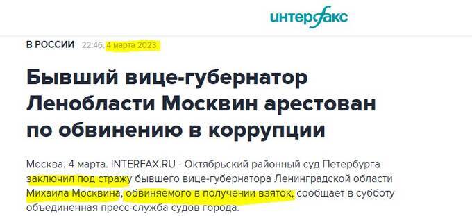 В этот же день СМИ сообщили, что сотрудники СК РФ пришли «в гости» и к бывшему вице-губернатору Ленинградской области Михаилу Москвину как раз таки из-за уголовного производства, по которому был задержан Федичев. Из дома Москвина отправили прямиком в СИЗО.
