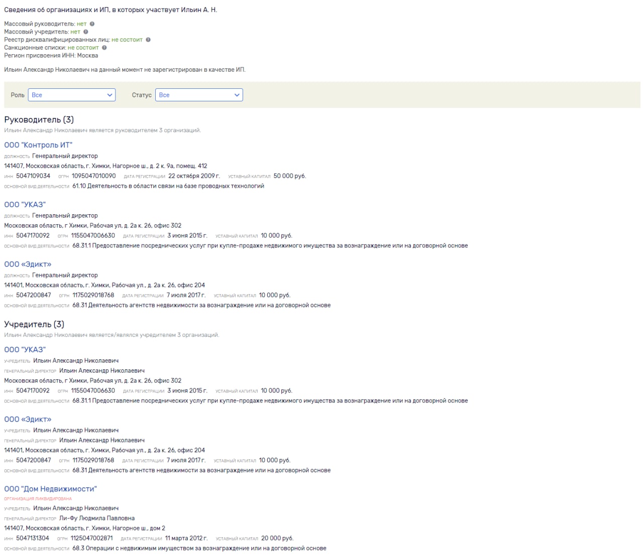 Так, он начал руководить тремя ООО - помимо ООО "Контроль ИТ" - в списке - ООО "Указ" и ООО" Эдикт".