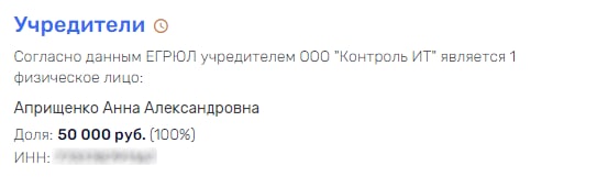 Она была руководителем (и учредителем) в ООО "Контроль ИТ". И еще числилась учредителем в ООО "Инженер Центр".